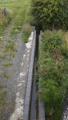 Culvert 24C runs under the adjoining land and reappears as a stream in the next field. There's a makeshift grille on the end of the pipe that needs to be renewed at some stage. The cancelled work plan for this year included building a silt trap and proper headwall and wing walls here that would allow regular maintenance. Currently the silt is so soft you can sink to the knees if you step in the wrong place.